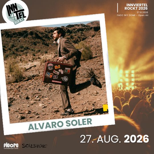Nach gefeierten Kollaborationen mit Stars wie Jennifer Lopez, Flo Rida, Birdy, Topic, Juanes, David Bisbal und Nico Santos ist Alvaro Soler 2026 wieder live auf großer Festivaltour – und macht dabei auch Halt bei Innviertel rockt! ????